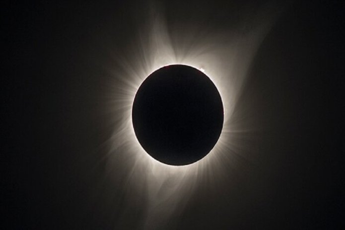 در طول خورشیدگرفتگی کامل، ماه کاملا چهره خورشید را میپوشاند و امکان دیدن جو بیرونی خورشید موسوم به تاج را به وضوح فراهم میکند.