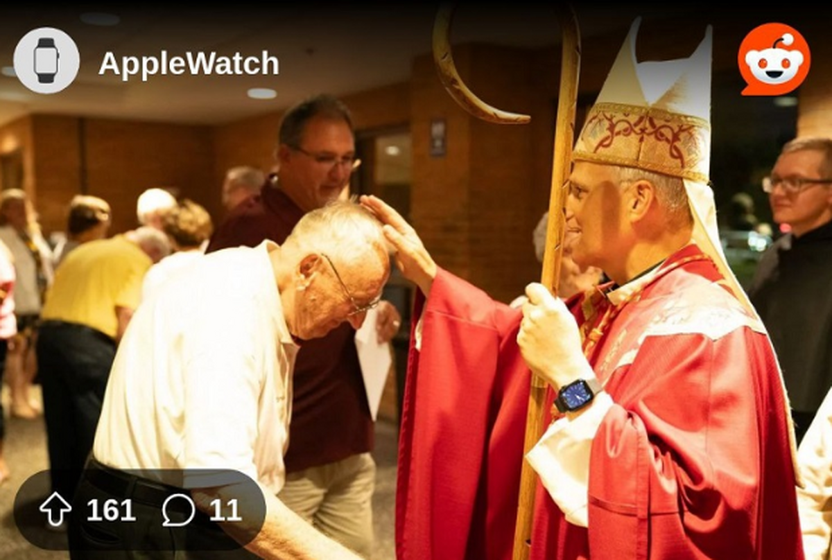 این ادعا با پستی از کاربری در ردیت به نام Alexander Humbolt پشتیبانی شد که تصویری قدیمی از پاپ در حال دعا برای یک سالمند را یافت؛ تصویری که دقیقاً در ساعت ۷:۳۵ شب گرفته شده است. هرچند کیفیت تصویر به اندازهای نیست که بتوان تشخیص داد آیا حلقههای فعالیت روزانه (Activity Rings) اپل واچ وی کامل شده بودند یا نه.